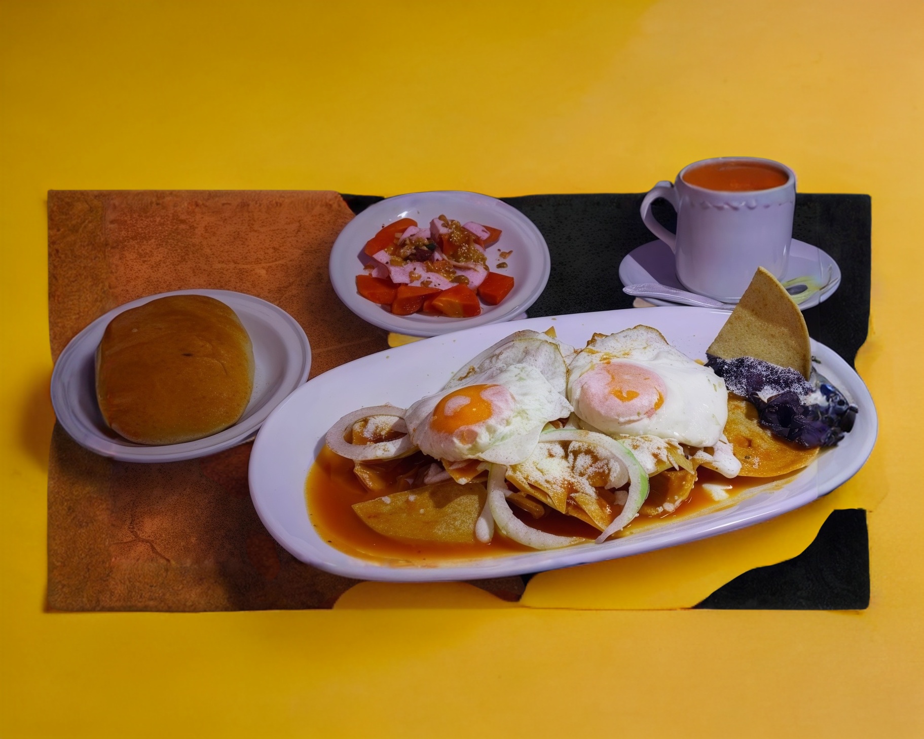 Carne Asada con Chilaquiles*1 + Bebida*1 + Plato de Frutas*1 + Pan Blanco*1