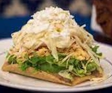 4 pisos jamón pollo y queso manchego, lechuga jitomate aguacate y rajas
