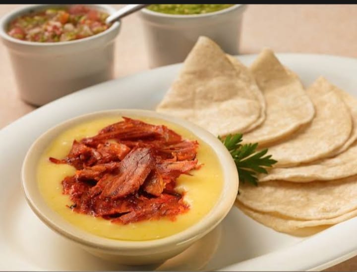 4 Tortillas de Harina , Queso Manchego y Asadero y Carne Pastor