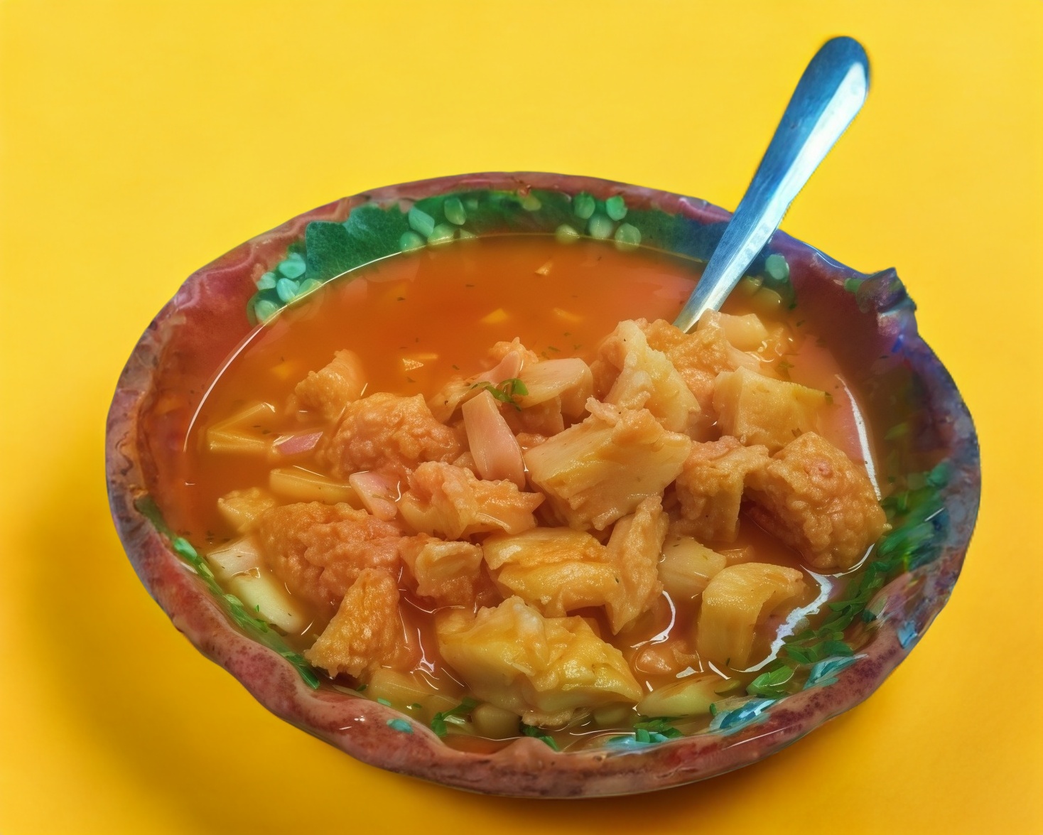 Caldo de pollo con pechuga desmenusada y verdura