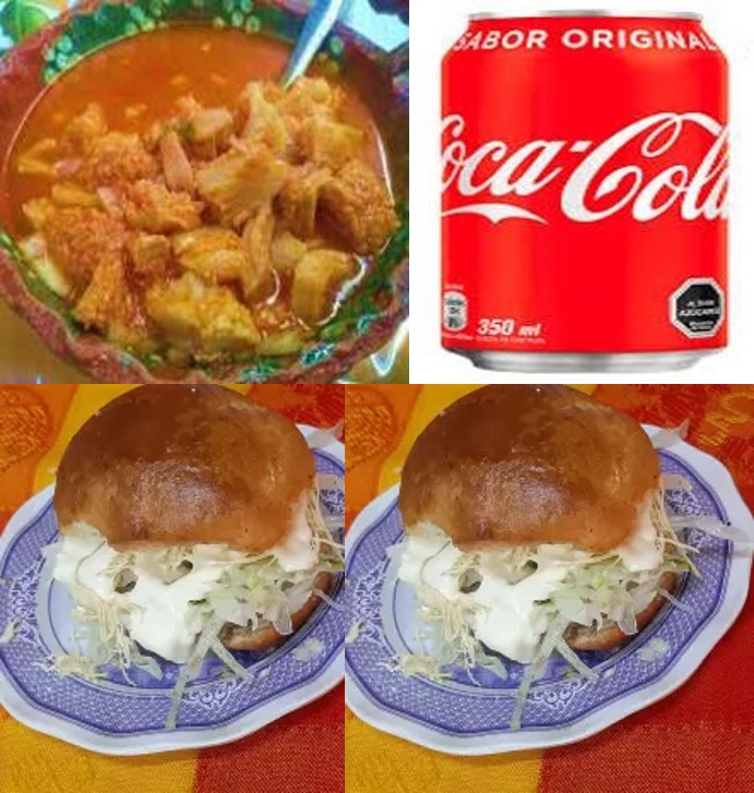 1 Pozole con 1 Tostada 1 Coca Cola 355 ML