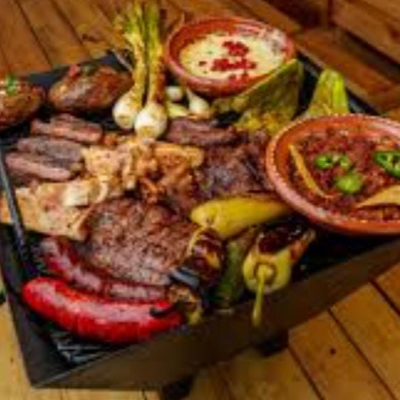 CARNE AZADA ARRACHERA CHISTORRA LONGANIZA CAMARON CEBOLITAS NOPALES QUESO Y TORTILLAS (ACOMPALLADO DE GUACAMOLE Y SALSAS )Y POLLO