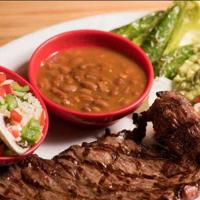 250g DE CARNE ACOMPAÑADO PICO DE GALLO FRIJOLES Y GUACAMOLE