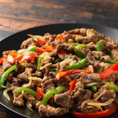 PIMIENTOS CEBOLLA CARNE AZADA QUESO(ACOMPAÑADO DE TORTILLAS HARINA O MAIZ SALSAS YNLIMONES)