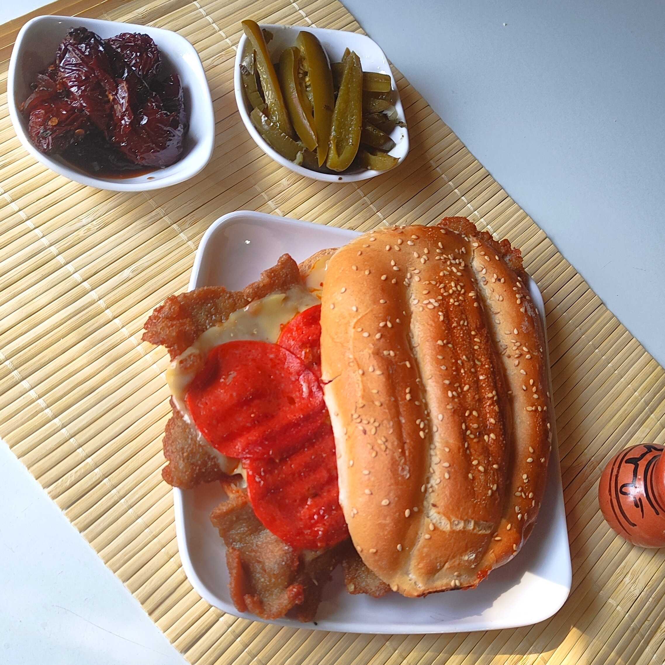 Milanesa de 100 grms ,jamon relleno con queso gouda y salchicha ,armala como tu quieras