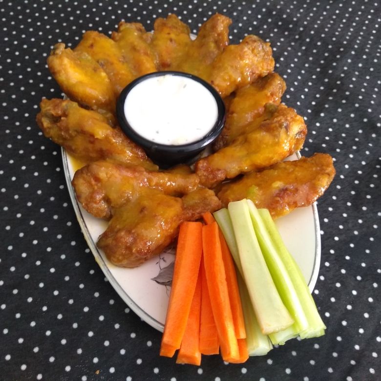 Acompañadas de blue cheese, bastones de zanahoria y de apio, salsas mango, habanero, buffalo, BBQ.