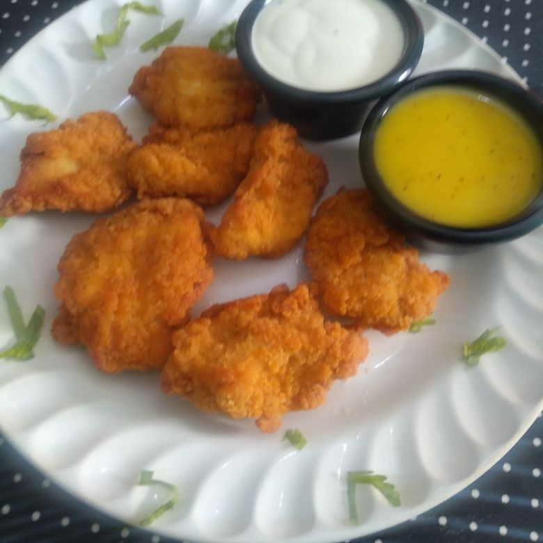 250gramos de cubos de pollo sin hueso bañados en salsa buffalo o naturales, aderezo honey mustard o ranch