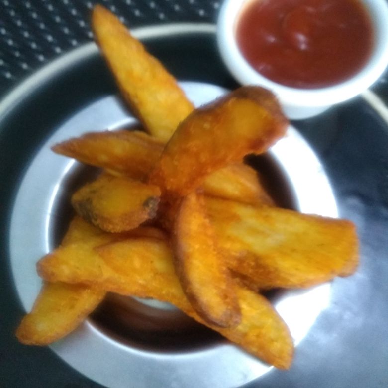 10 pzas,de aros de cebolla empansadas ftrias como complemento salsa marinara hecha a base de tomate rojo .