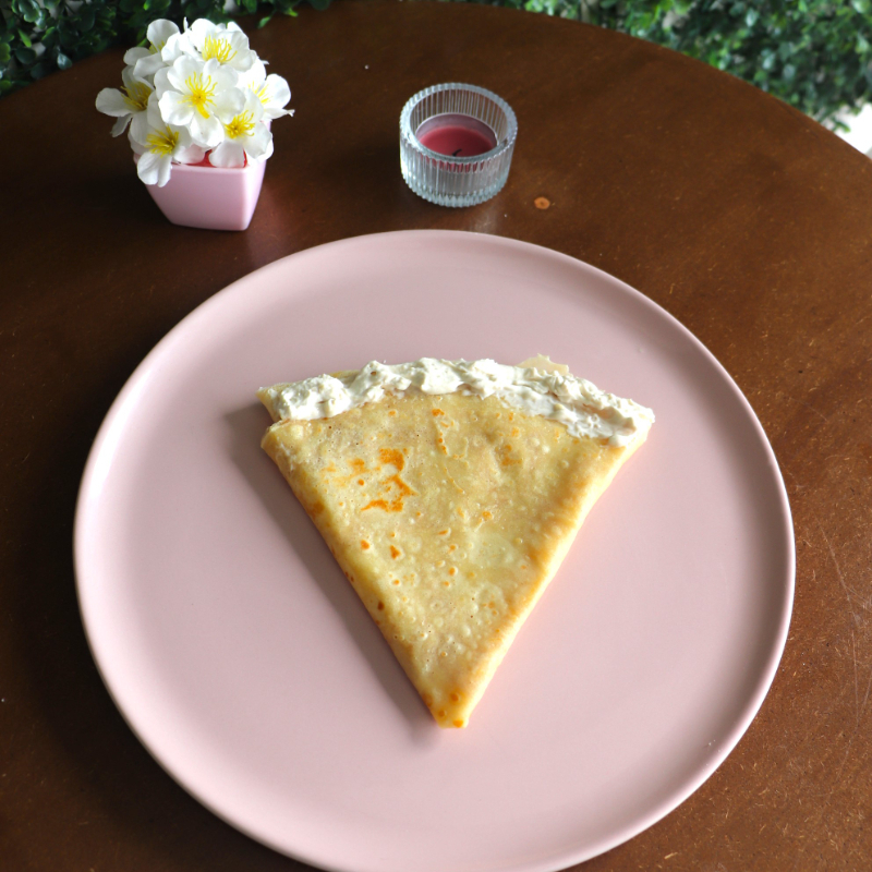 Crepa rellena de queso Philadelphia, cremosa y ligera, ideal para quienes disfrutan lo sencillo.