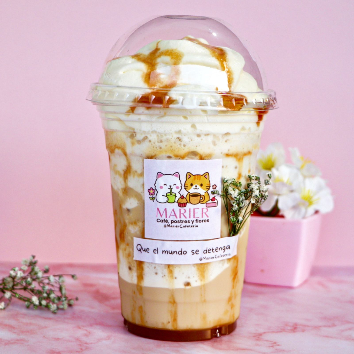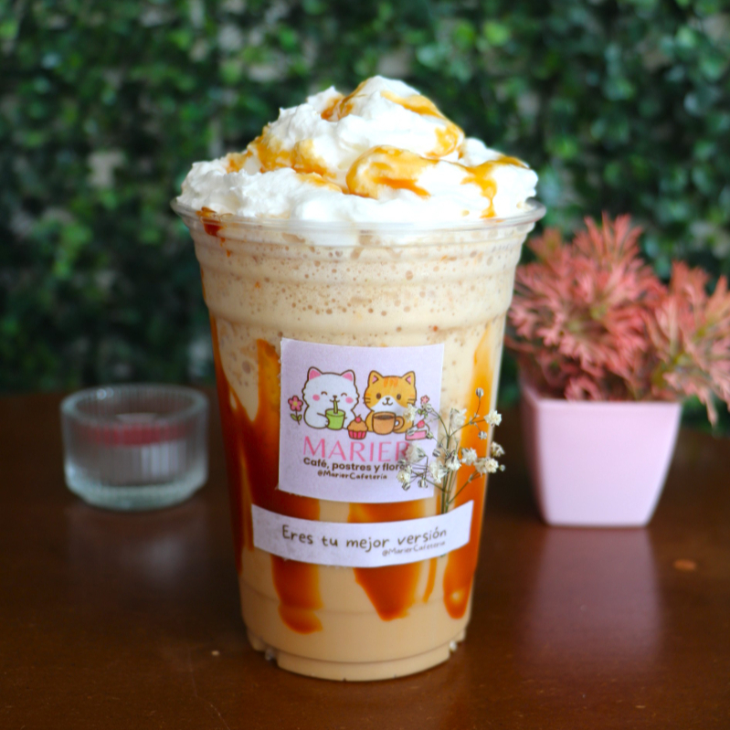 Café de especialidad con hielo, leche y un toque generoso de caramelo, todo mezclado hasta lograr una textura frappé cremosa y deliciosa. Dulce, refrescante y adictivo.
