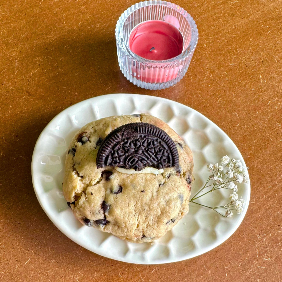 Galleta estilo Nueva York de masa vainilla, con chispas de chocolate y trozos de Oreo. Crujiente por fuera y suave por dentro, perfecta para los amantes del balance entre lo clásico y lo dulce.