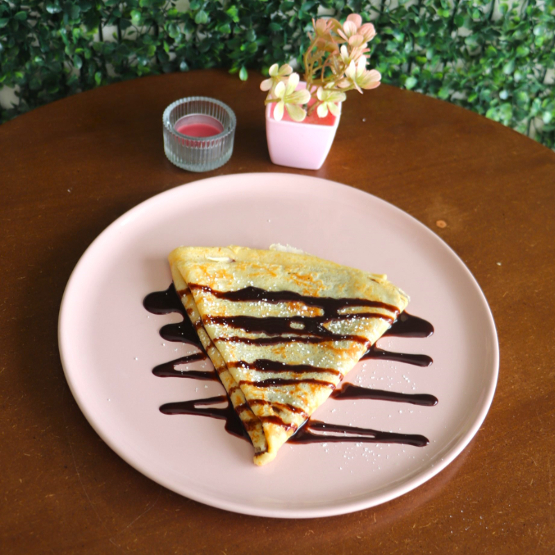 Crepa artesanal rellena de Nutella cremosa, con el balance perfecto entre lo suave y lo dulce.