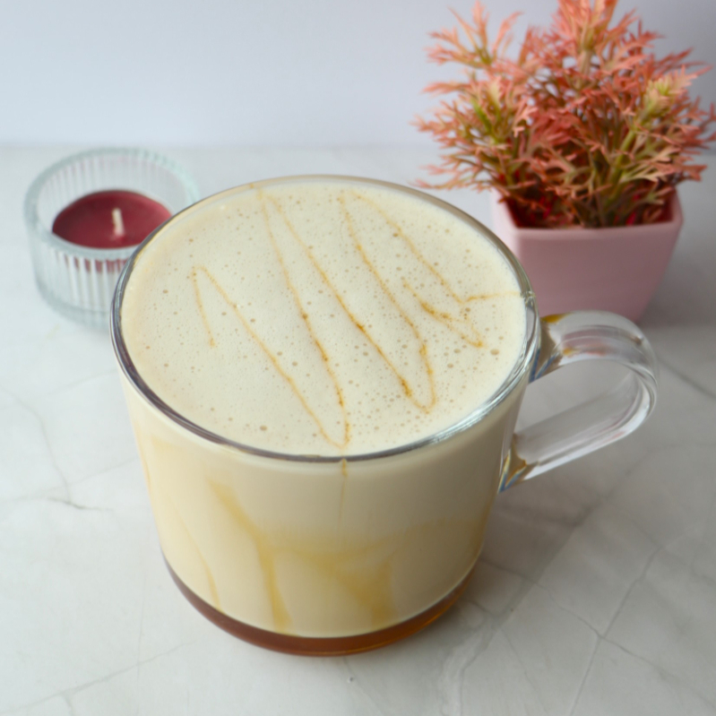 Una mezcla reconfortante de concentrado de chai y leche deslactosada caliente. Dulce, especiado y perfecto para acompañarte en momentos de calma.