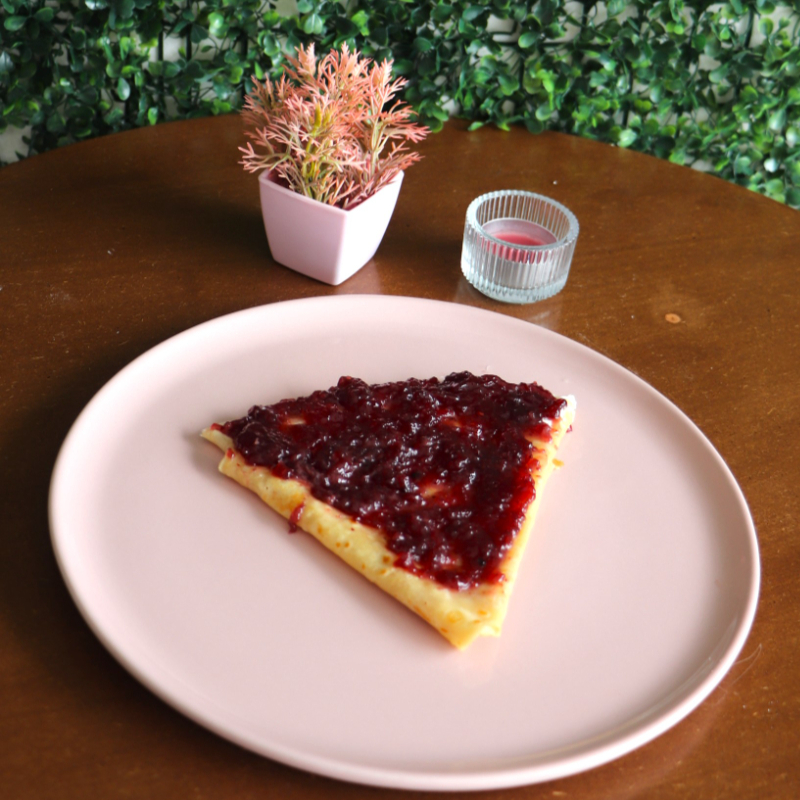 Crepa rellena de mermelada frutal. Ligera y dulce, ideal para cualquier momento.