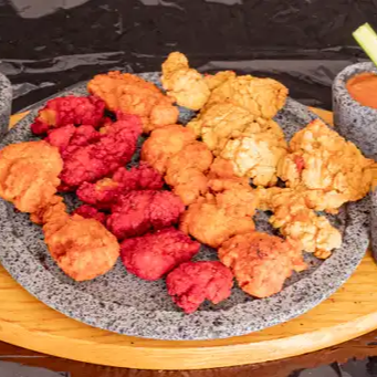 16 piezas de Boneless del empanizado de su eleccion, acompañados con 2 aderezos de su eleccion