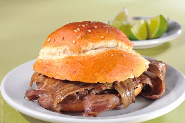 Pan de cemita con carne árabe.