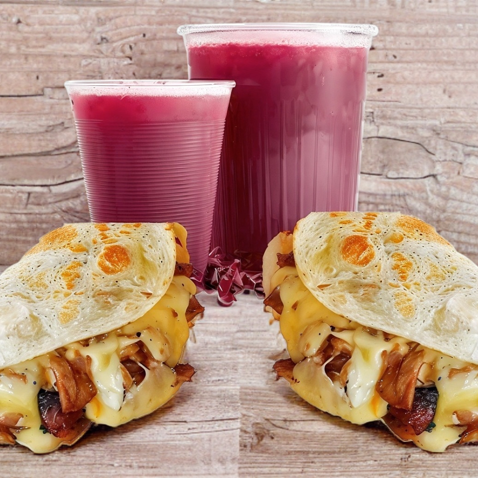 Dos tortillas de harina, carne de res, tocino y queso