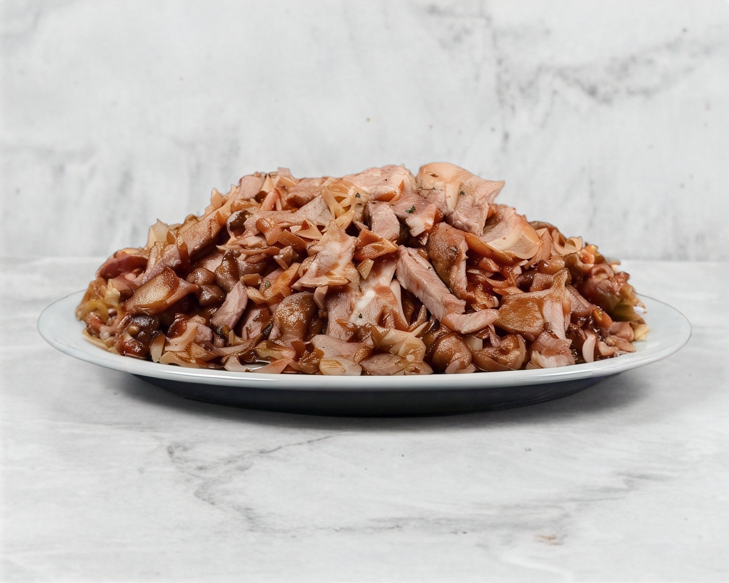 Carne al pastor, pico de gallo (jitomate, cebolla, cilantro, jalapeño picante) tocino, jamón y queso. (350 g).