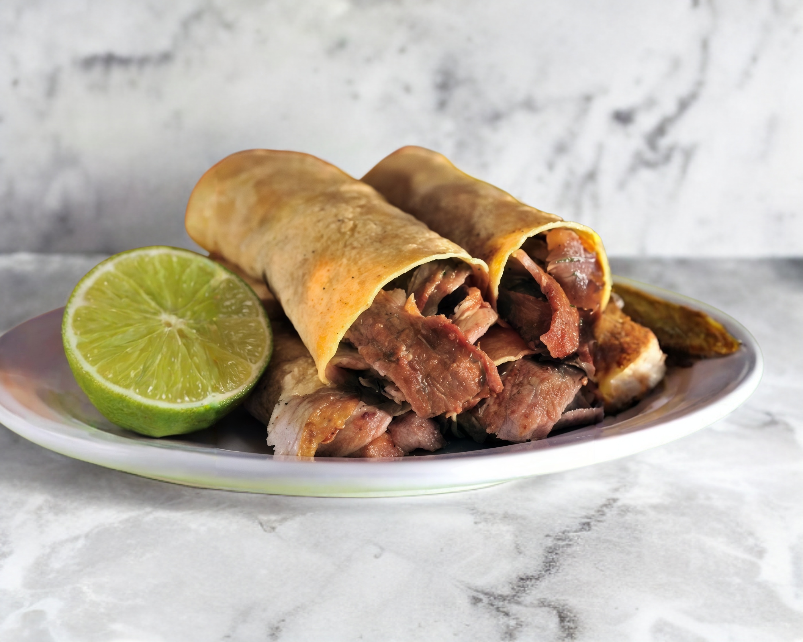 Tortilla de maíz de 10 cm y 40 g de carne.