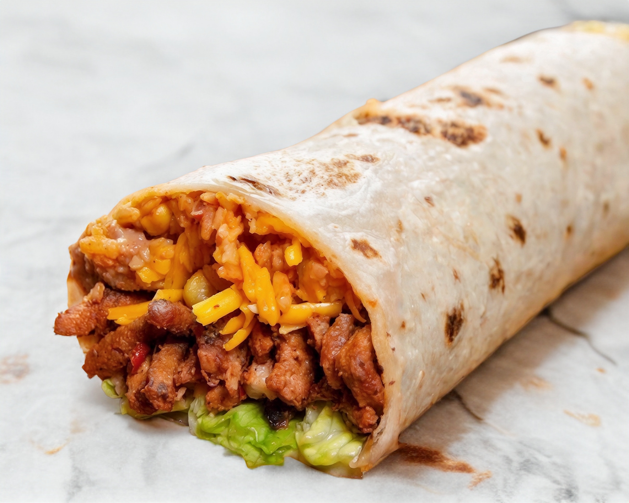 Tortilla de harina de 30 cm y 60 g de carne más completos.