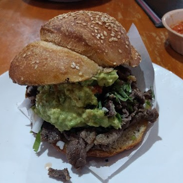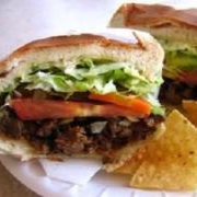 Pan de agua, carne asada, cebolla, cilantro y guacamole.