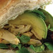 Pan de cemita, pollo asado, cebolla, cilantro y guacamole.