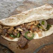Tortilla en pan árabe o harina, carne árabe y queso.