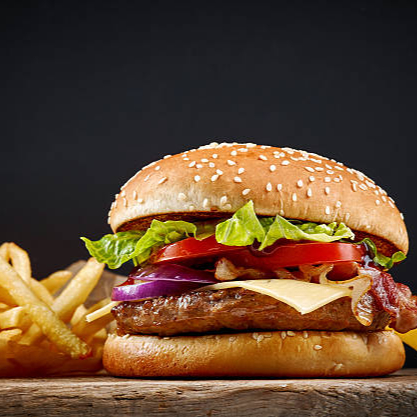 Carne 100% de res, mayonesa, cátsup, mostaza, queso amarillo, cebolla, lechuga, jitomate, jalapeño, acompañadas de papas a la francesa.