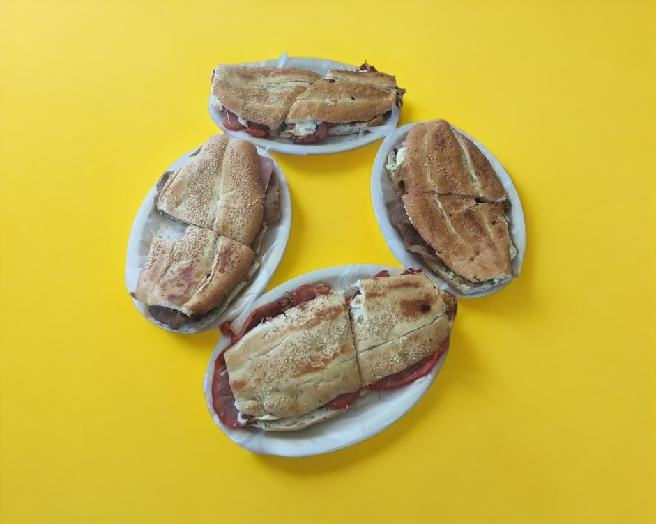 Milanesa, pierna, queso amarillo, queso de puerco, queso blanco, jamón, salchicha y huevo con chorizo.