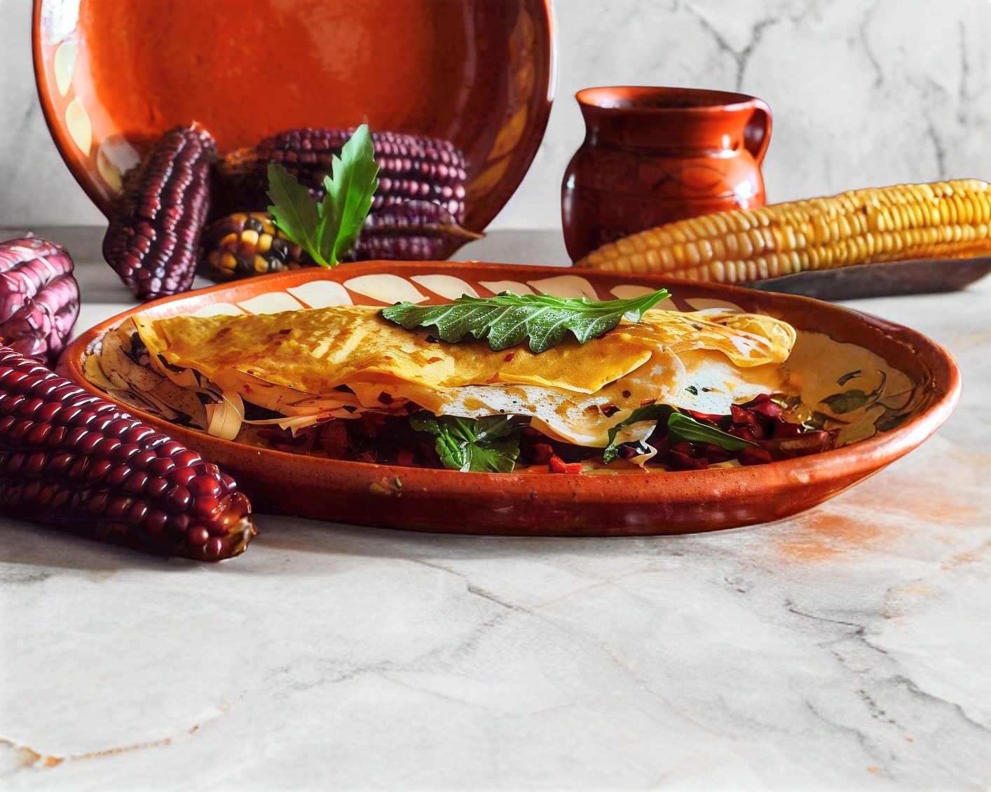 Tortilla de maíz doblada a la mitad rellena de quesillo más los ingredientes que prefiera.