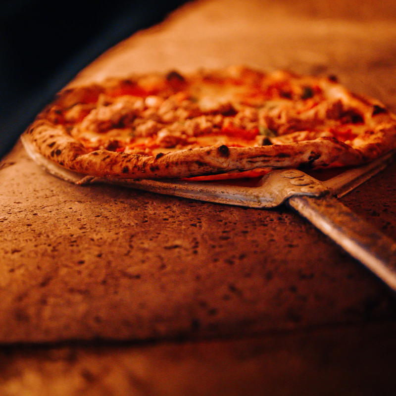 Grande 35 cm 8 rebanadas , tradicional pizza con base de tomate fresco, queso mozzarella fresco y terminada con albahaca fresca.