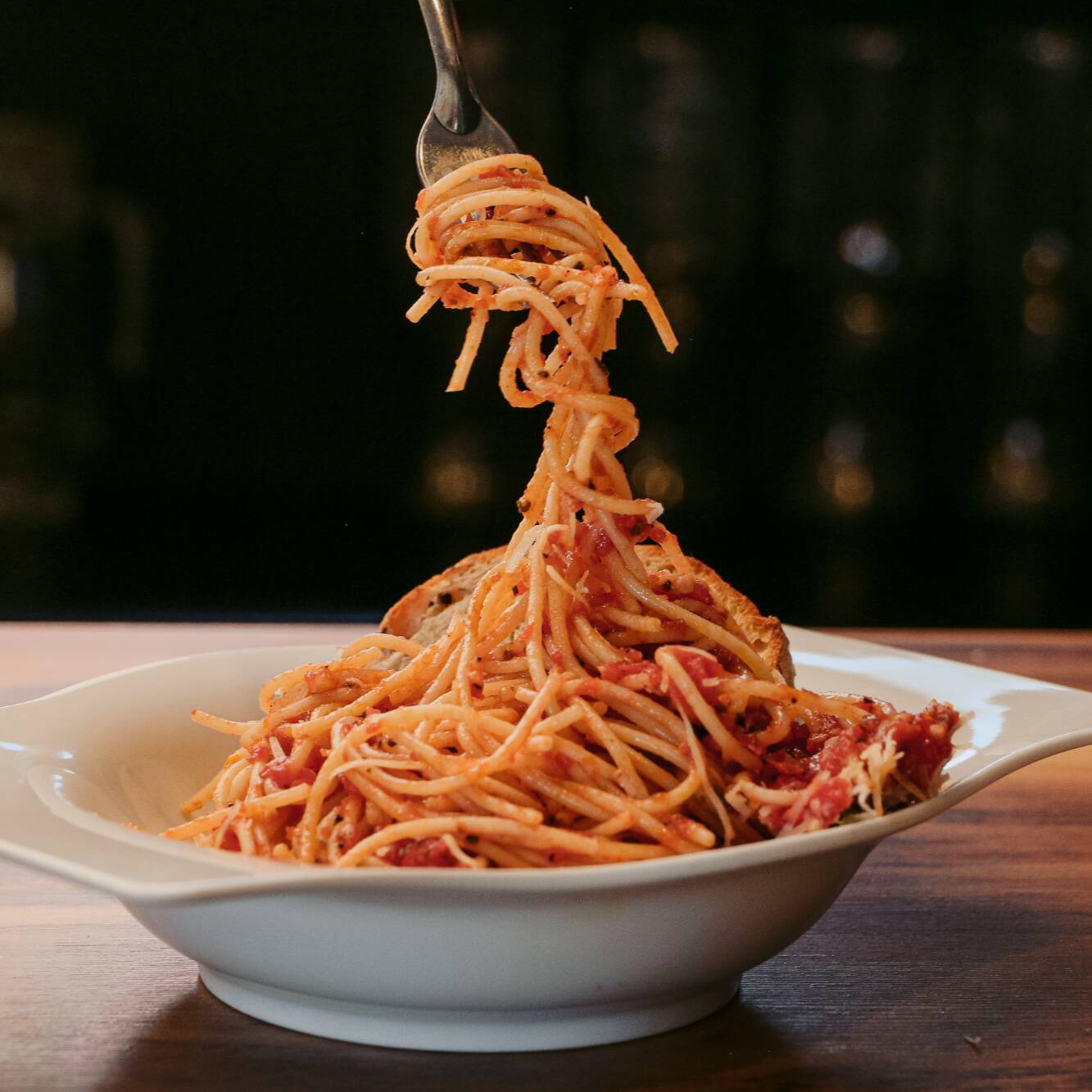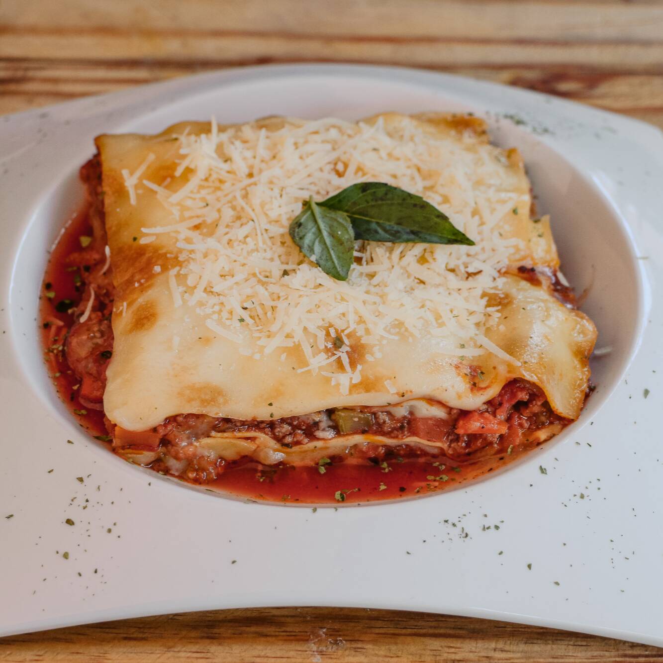 Lo mejor de nuestra boloñesa con un toque de vino tinto y gratinada al horno