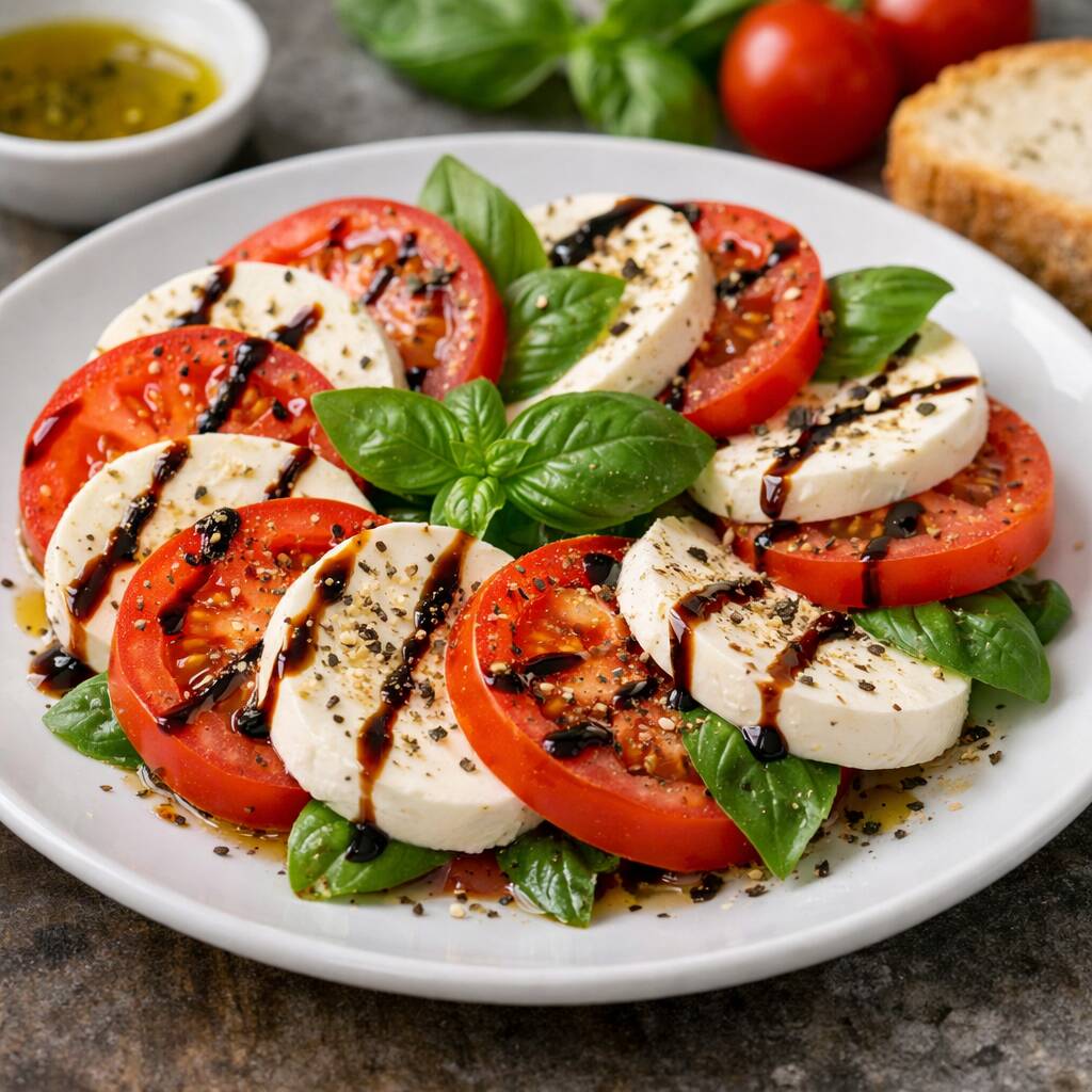 Tradicional ensalada elaborada con rodajas de mozzarella fresca, jitomate bola y un toque de pesto de albahaca terminada con un toque de parmesano.