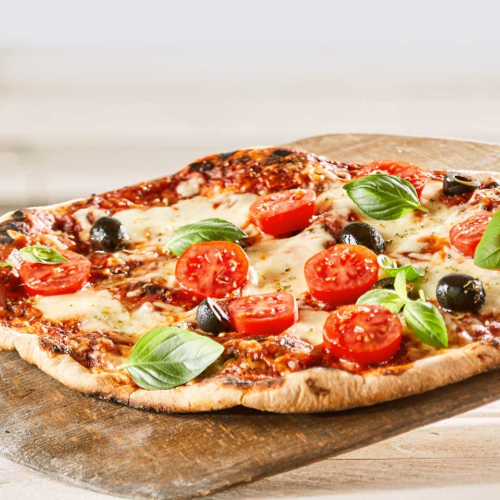 Grande 35 cm 8 rebandas , la favorita de los expertos, frescas rebanadas de jitomate, aceitunas verdes, orégano, albahaca fresca y aceite de oliva.