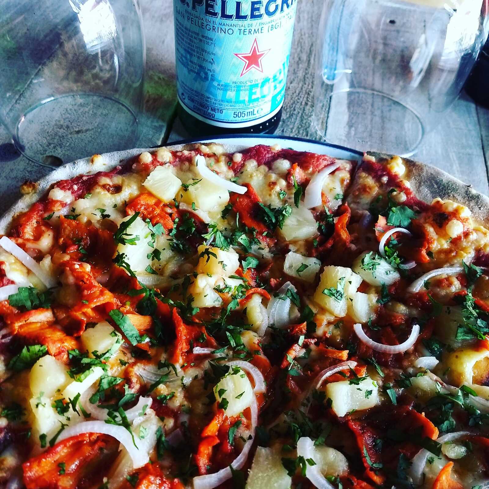 Grande 35 cm 8 rebanadas lo mejor de los tacos en una pizza, deliciosa carne al pastor con su cilantro, cebolla y piña.