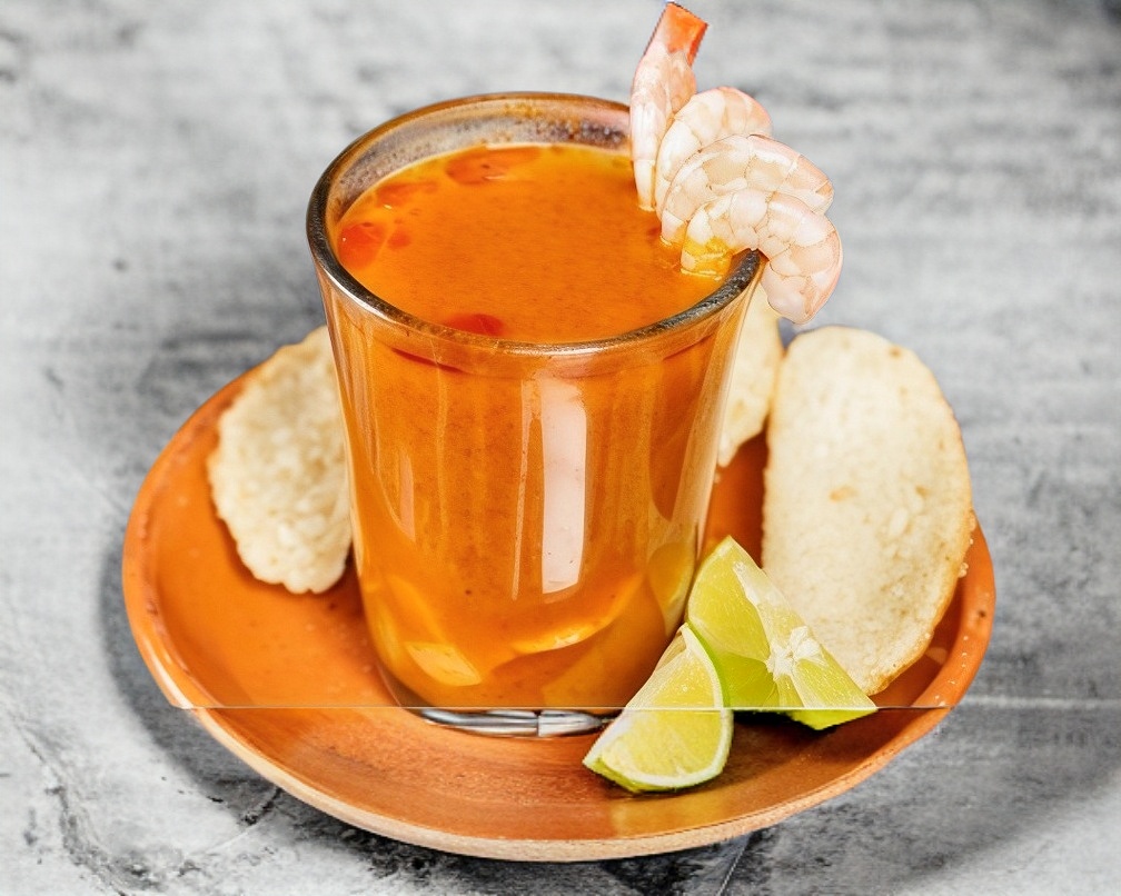 Cebolla, rábano, lechuga, chilito en polvo, orégano, tostadas y chicharrón.