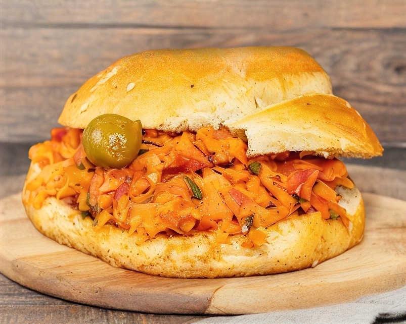 Cemita Chica de Bacalao a la Vizcaina.