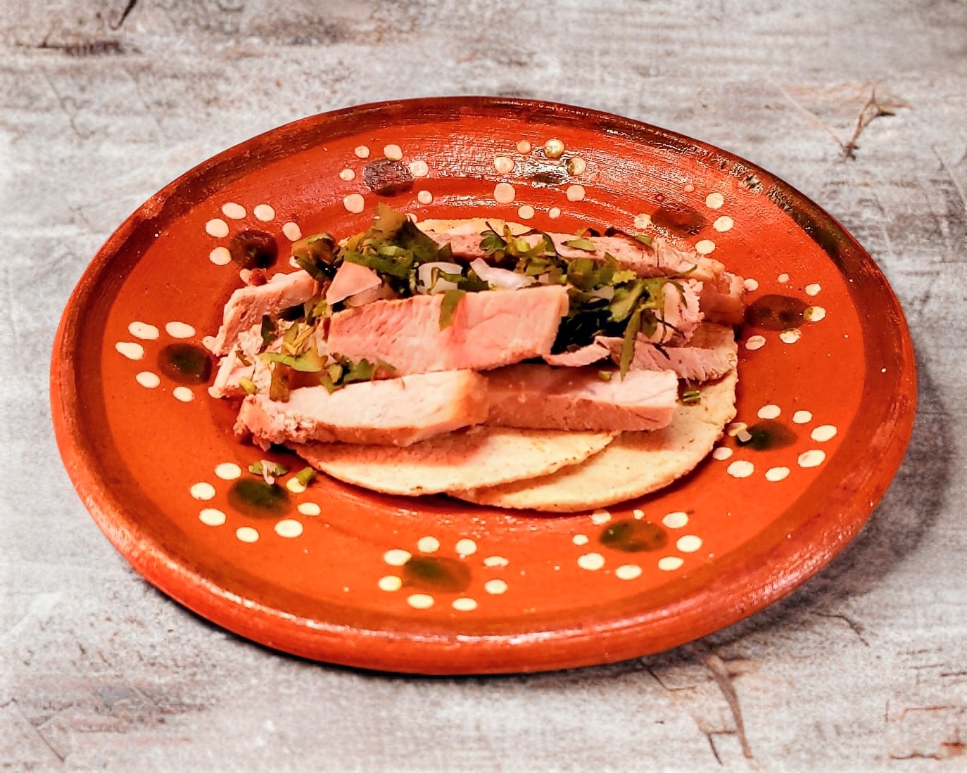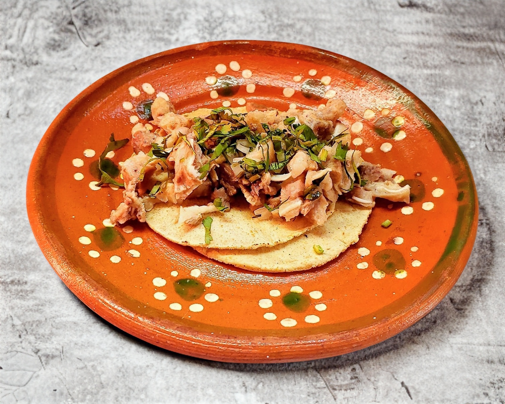 Acompañado con cebolla, rábano, lechuga, chilito en polvo, orégano, tostadas y chicharrón. "Si deseas la verdura por separado, por favor indícalo".