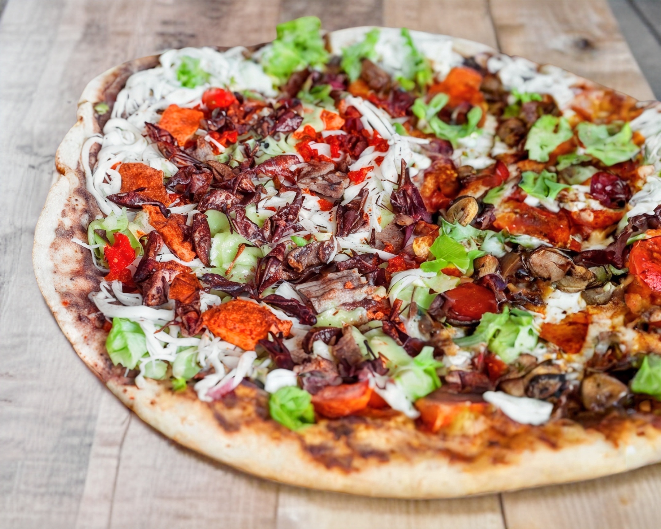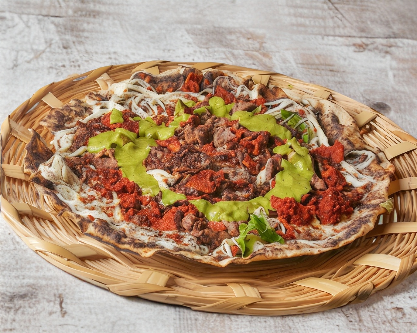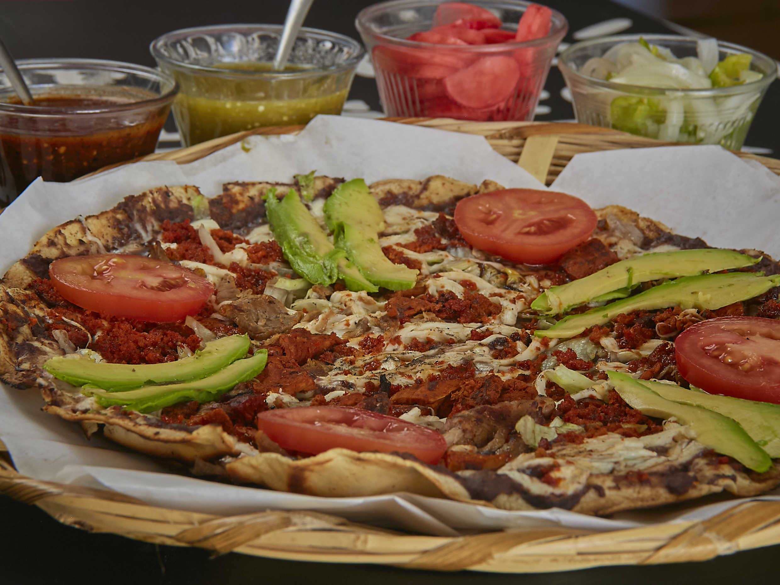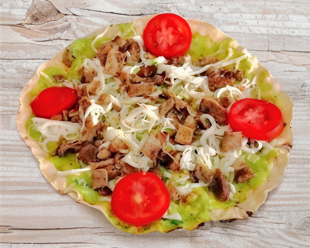 Extendida con guacamole, verdura, quesillo y jitomate.