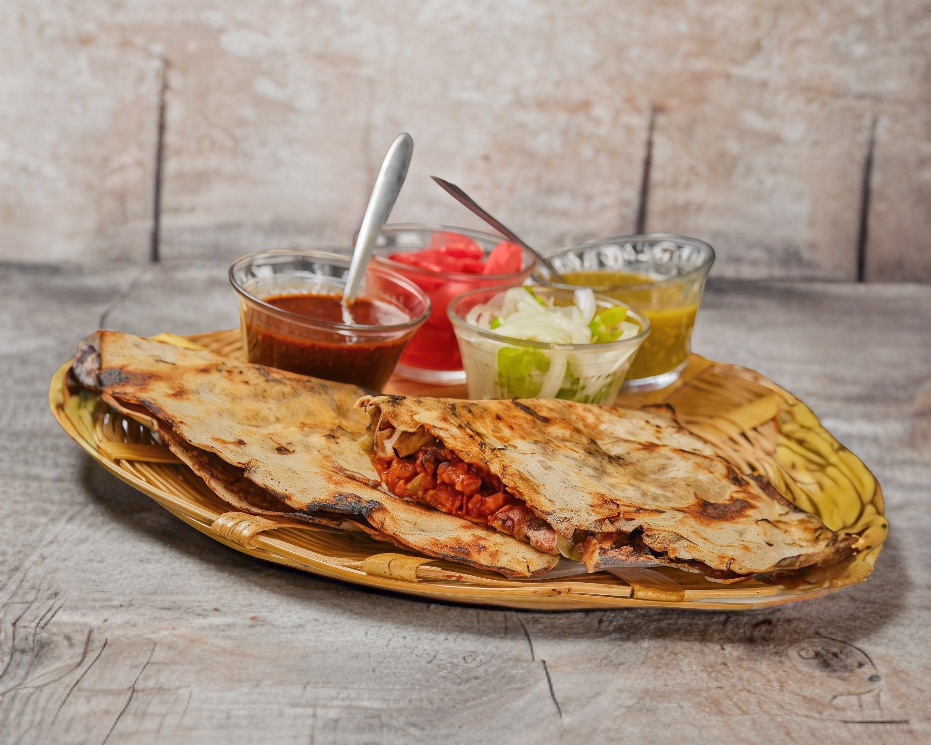 Tlayuda doblada de maíz blanco con frijol, asiento, quesillo, verdura. Puedes agregar carne de tu elección. La mixta lleva todas (tasajo, cecina enchilada y chorizo). Es deliciosa!!!