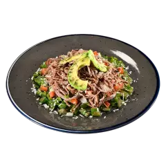 (335 gr) Fresca combinación de nopal, pico de gallo, queso y carne deshebrada de res, acompañado con vinagreta mexicana