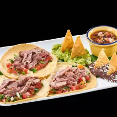 (para 2 pax) Incluye: 3 tayoyos, 2 chipotles rellenos, 3 tacos dorados, 3 chalupas, acompañado con guacamole y frijoles refritos