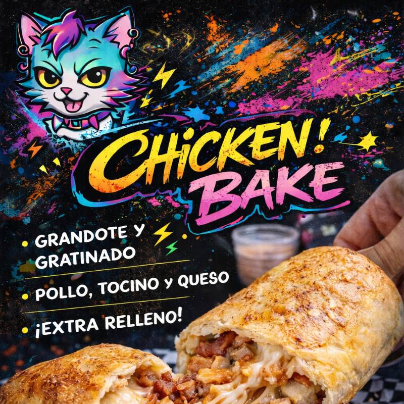 Pan relleno de pollo, tocino, queso y aderezo casero gratinado