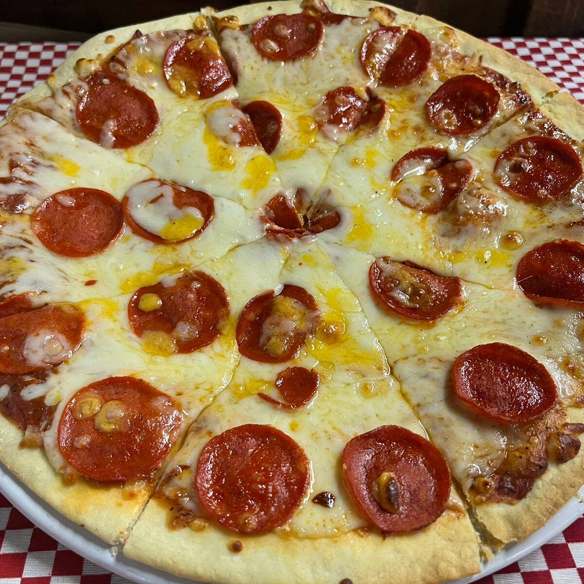 Pepperoni (50gr), clásica salsa pomodoro, queso mozzarella y queso cheddar.