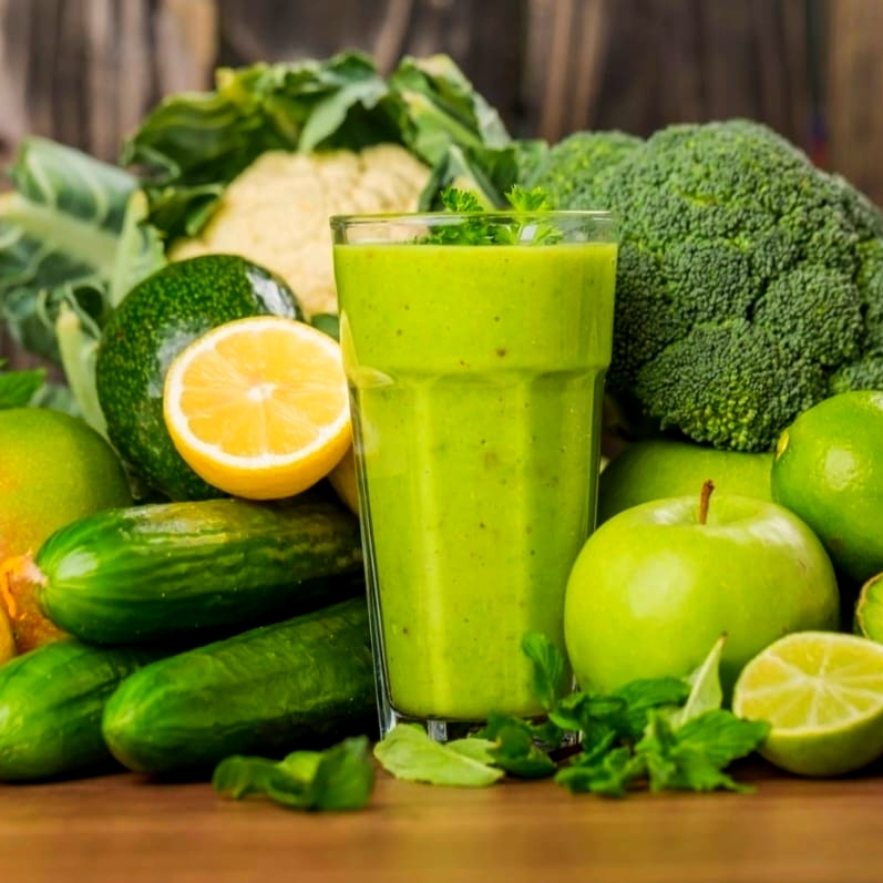 piña, apio, naranja, nopal, espinaca