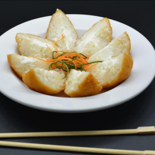 Pechuga de pollo empanizada rellena de queso manchego, espinacas, zanahoria, champiñones , montada sobre una cama de arroz y zanahoria rallada acompañada con salsa de anguila y ajonjolí