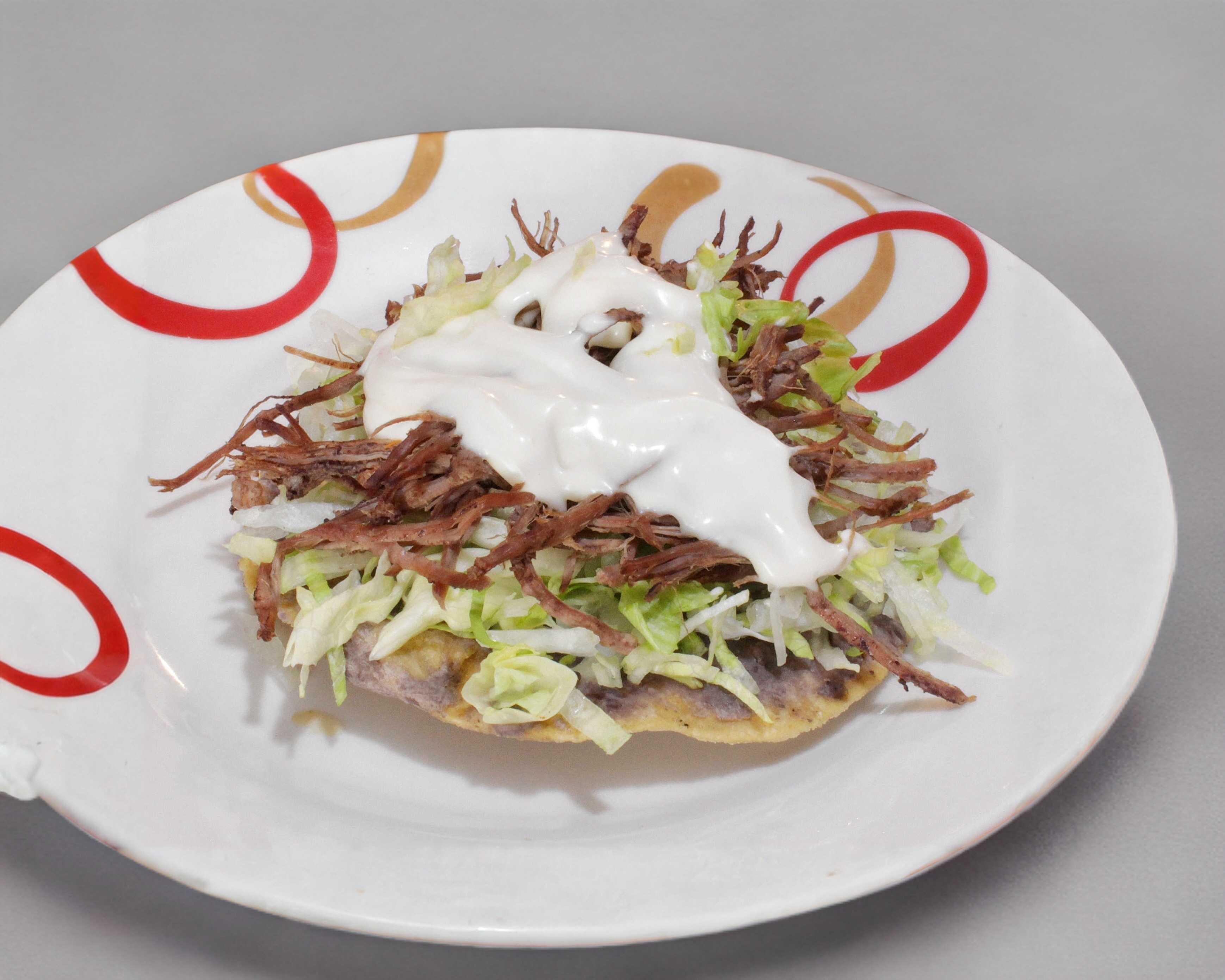Deliciosa TOSTADA con frijoles, lechuga y carne a elegir