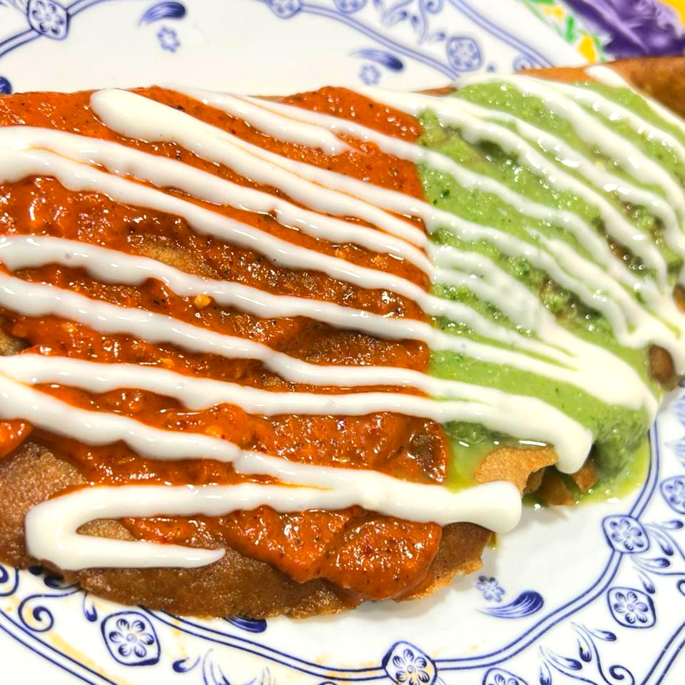 Molote relleno de TINGA con CHAMPIÑONES y QUESILLO