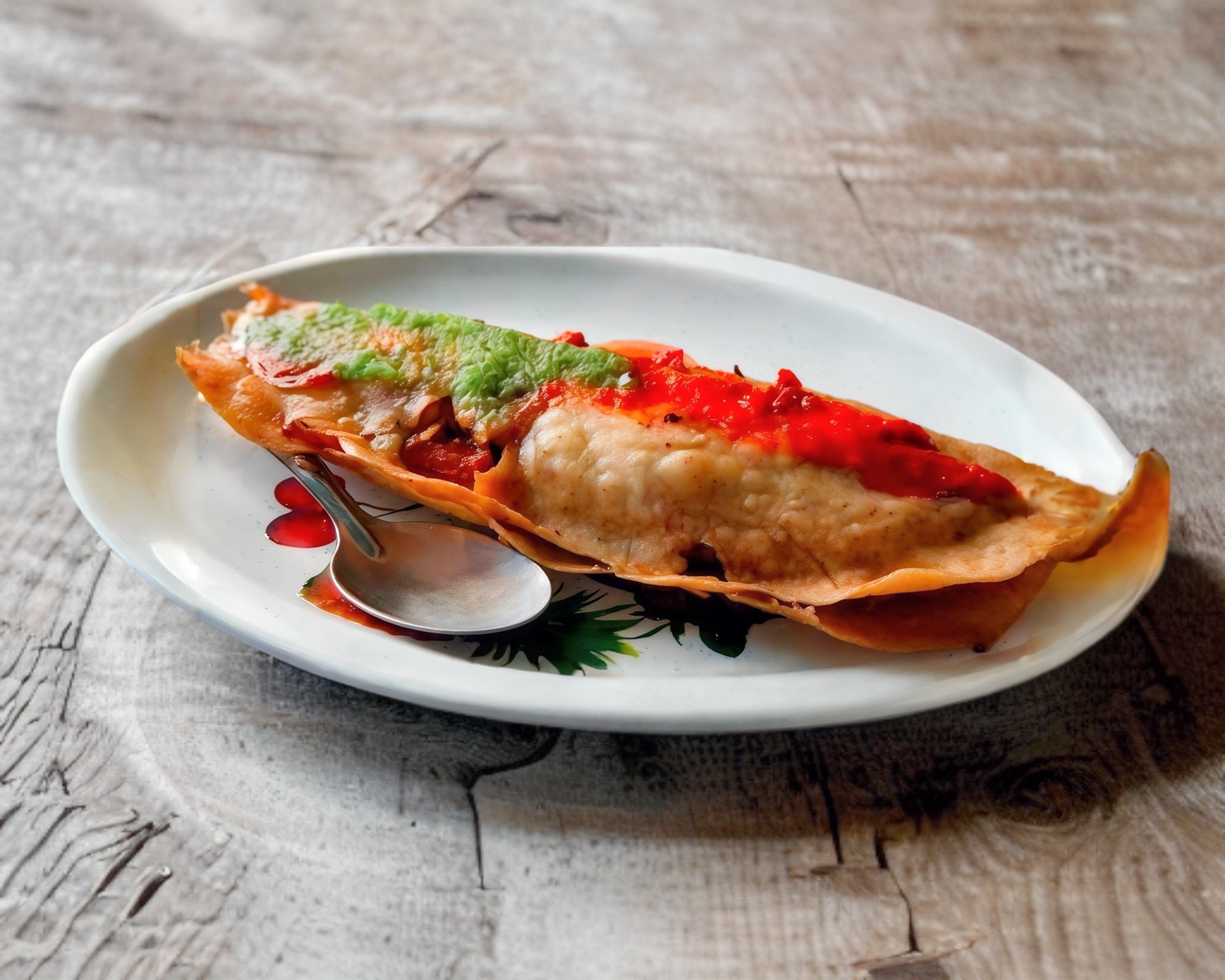 Relleno de tinga, pepperoni y queso o quesillo