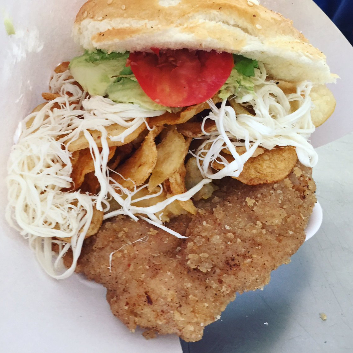 Cemita de milanesa con quesillo y aguacate.